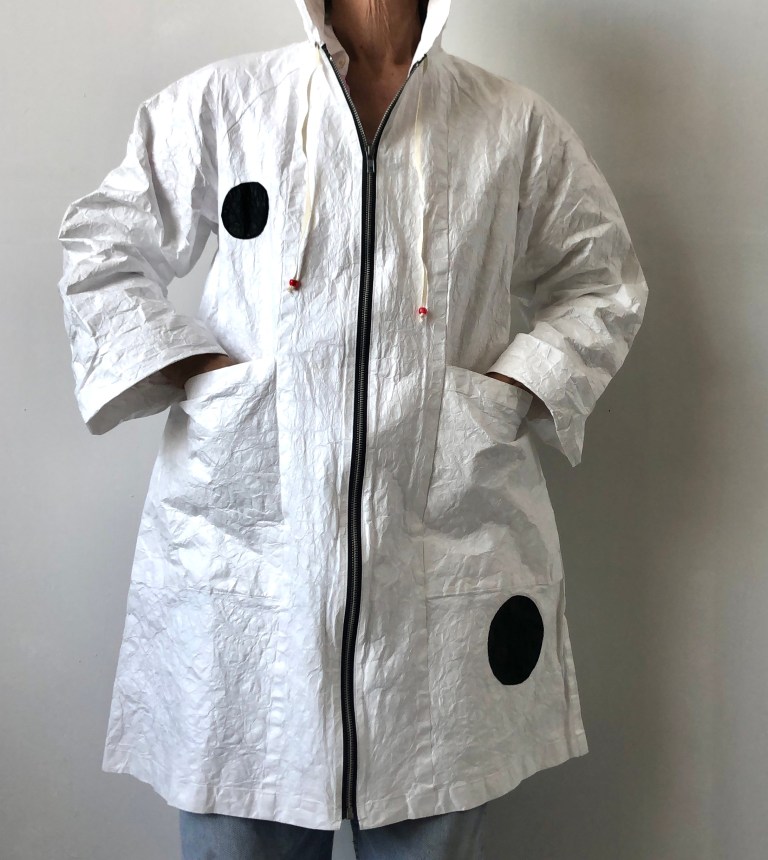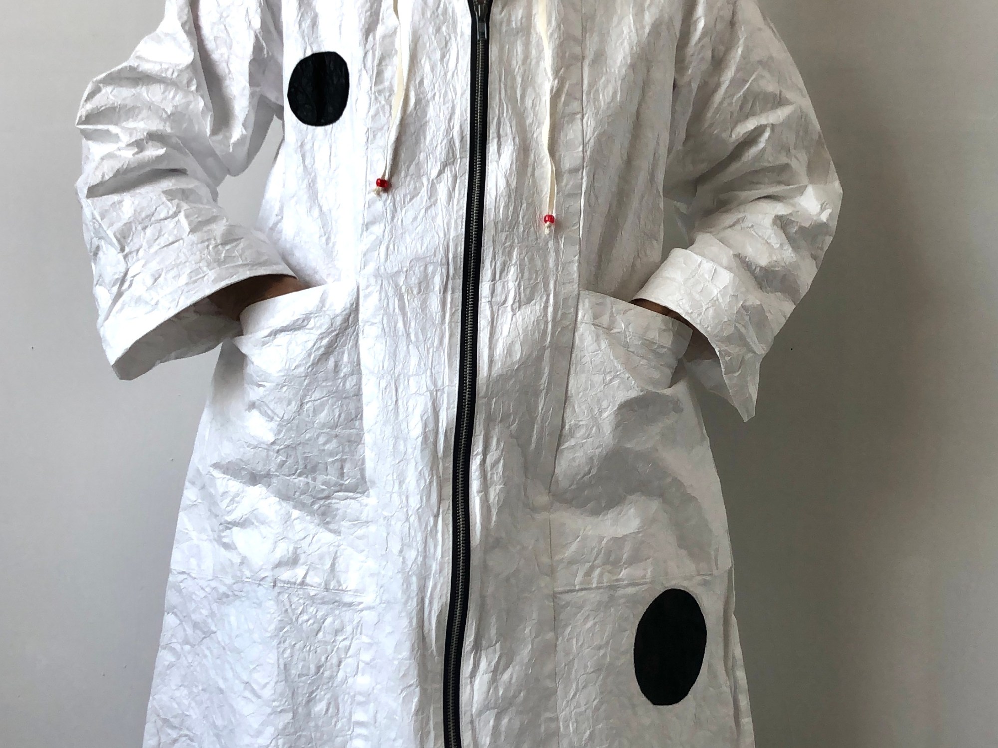 February 12, 2015November 3, 2025 White Coat with Hood special – 2 left – size medium Coat with Hood – white with appliqué circles – unlike the other coats, this coat is not water resistant- 2m $320.