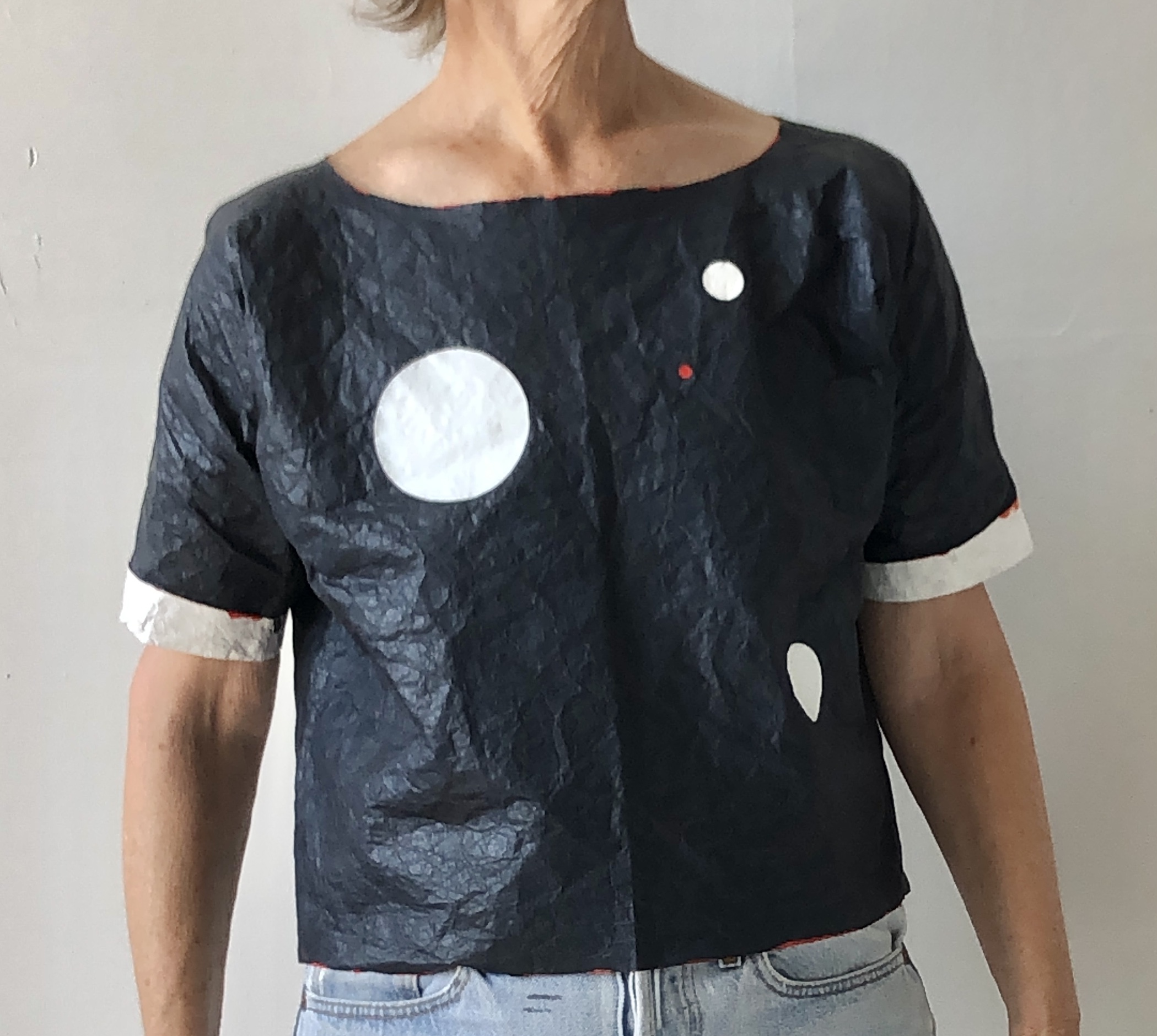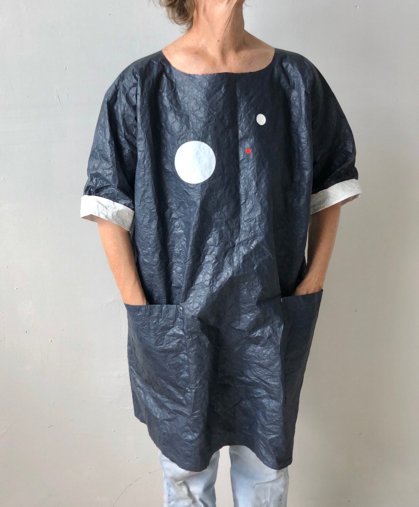 August 16, 2025August 16, 2025 aLine smock shirt and dress (one size) Carbon paper blue with fine red paint trim 1 top $200. 1 dress $275. Beautiful quality American Apparel shirts from 25 years ago.